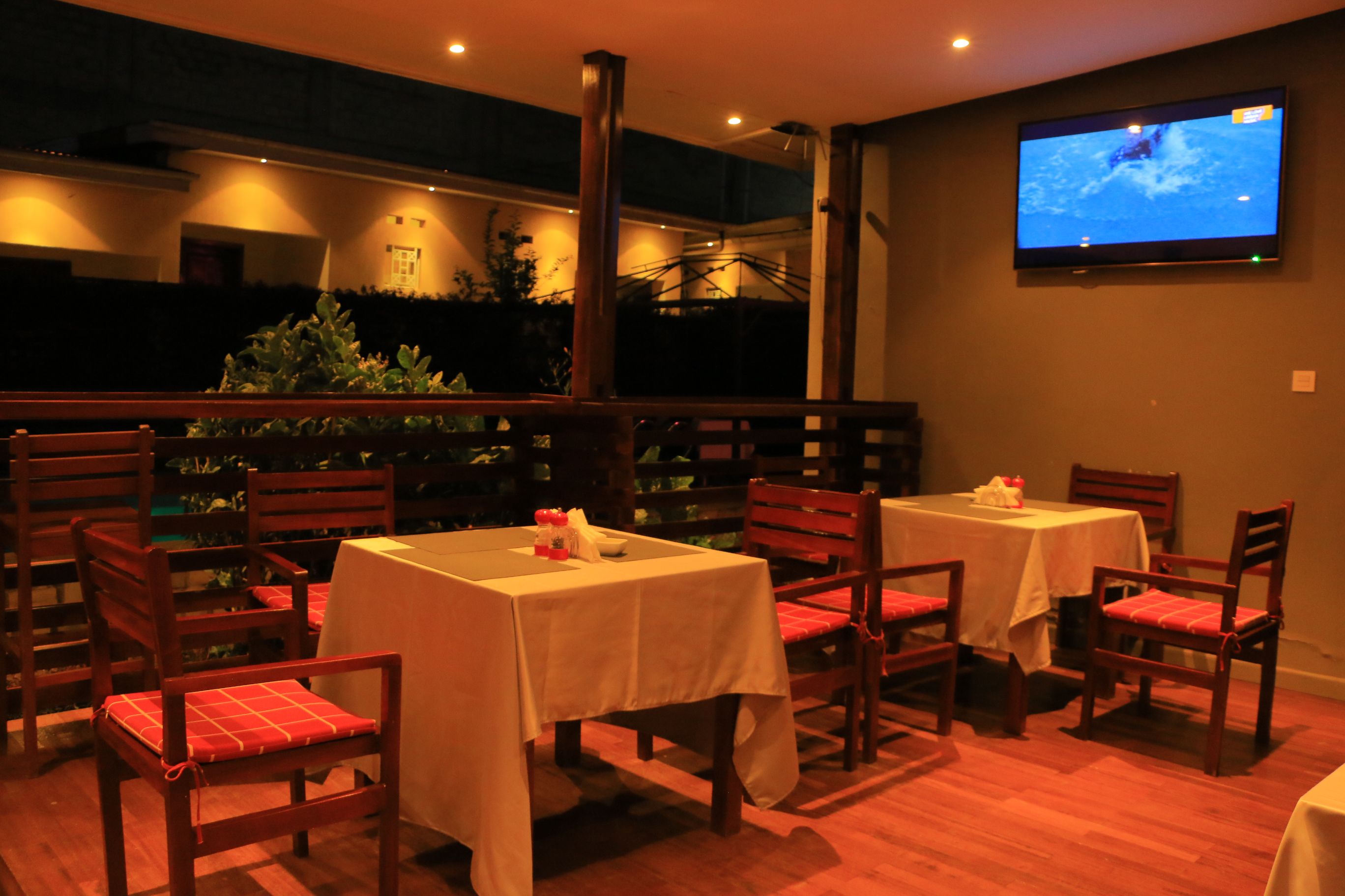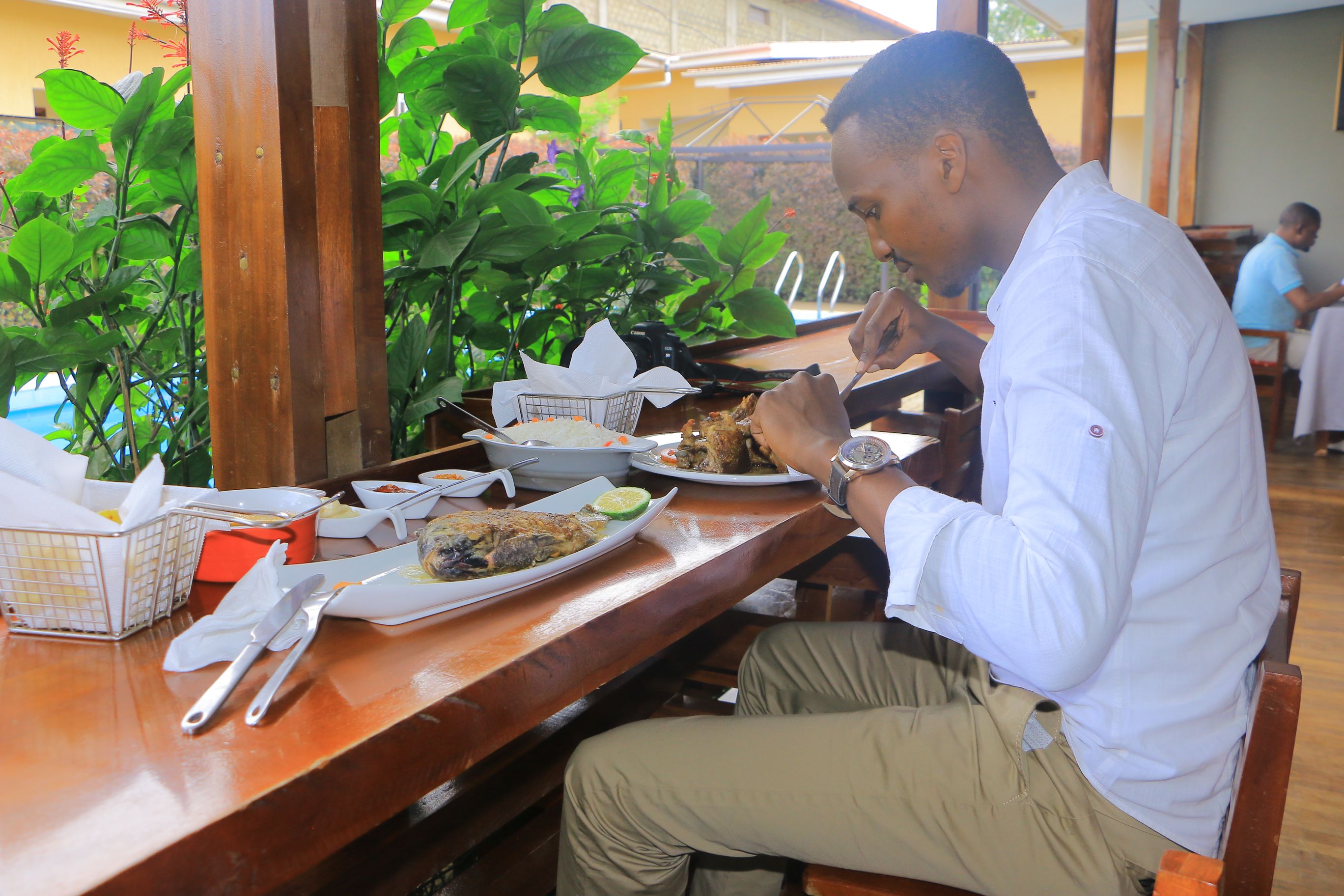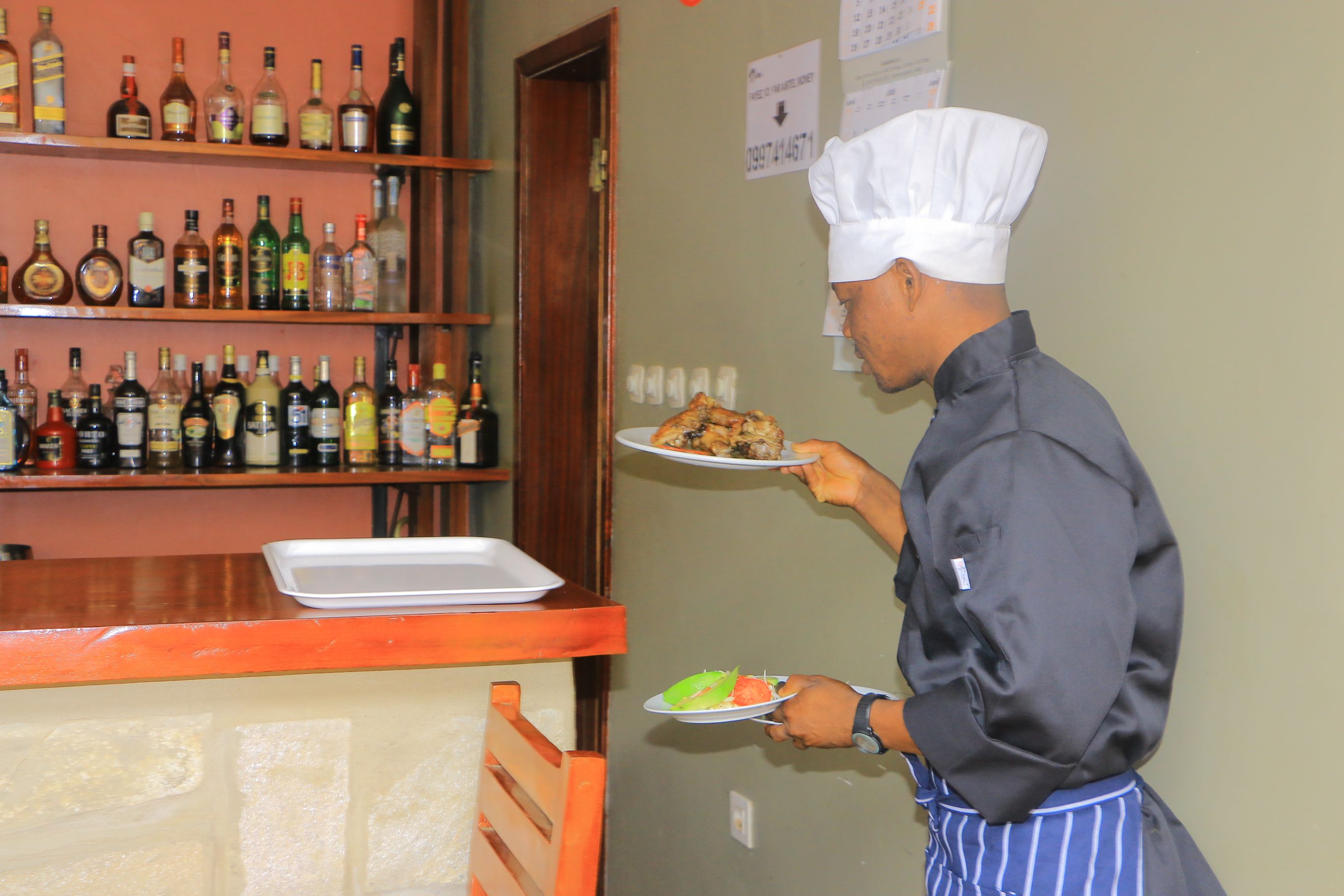 Avec une cuisine qui alterne les spécialités congolaises et occidentales, notre restaurant vous propose chaque jour, selon l’arrivage, une ardoise de suggestions mariant habilement fruits et légumes du marché, produits de la pêche et viande locale. Un buffet est également disponible les week-ends et vous etale une diversite de nourritures assaisonnees pour repondre a divers gouts.